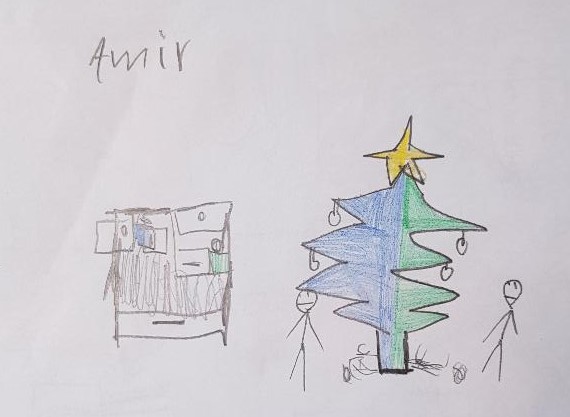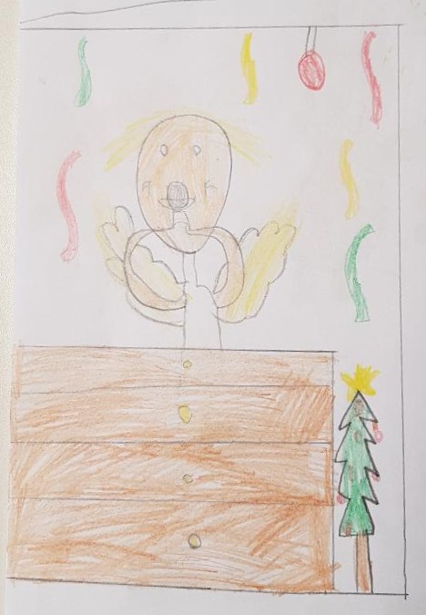 Ein Kind weint, weil es seine Geschenke nicht findet und Engelchen hat eine Idee.