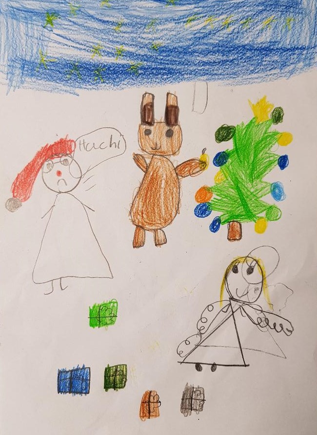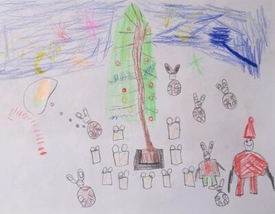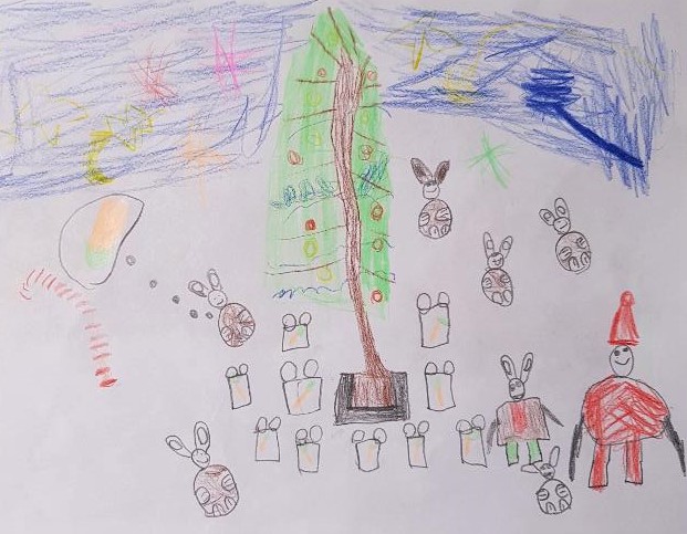 Als Dankeschön bringen die Kinder den Weihnachtsmännern und den Osterhasen Geschenke.