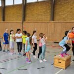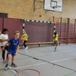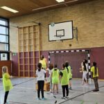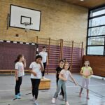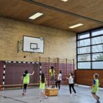 Auch dieses Jahr durften unsere Dritt- und Viertklässler am Basketballtag teilnehmen. Ermöglicht hat das der Basketballverband Baden-Württemberg in Kooperation mit dem TSV Ettlingen. Am 15.11. kam Frau Nina Skala, ein engagiertes und erfahrenes Vereinsmitglied mit vielen tollen Basketballspielideen im Gepäck zu uns an die Schule. Nach einem kurzen Aufwärmspiel übten die Kinder das Ballhandling auf abwechslungsreiche Art und Weise. Durch schnelle Passspiele und einen attraktiven Bewegungsparcours trainierten die Kinder neben Korbleger und Slalom-Dribbling auch Koordination und Ausdauer. Die Aufmerksamkeit und Konzentration wurden bei allen Spielen als Voraussetzung für ein gutes Zusammenspiel in den einzelnen Teams gefördert. Beim abschließenden Spiel Turmball mit Korbwurf fühlten sich alle Kinder wie große Basketballer/innen. Verabschiedet hat sich Frau Skala mit einem Turnbeutel für jedes Kind und einer vollen Stempelkarte für die erfolgreich durchlaufenen Übungen an diesem sportlichen Vormittag. Wir bedanken uns beim TSV Ettlingen für den diesjährigen Aktionstag an unserer Schule und freuen uns schon gemeinsam mit unseren Schülerinnen und Schülern auf das kommende Schuljahr.