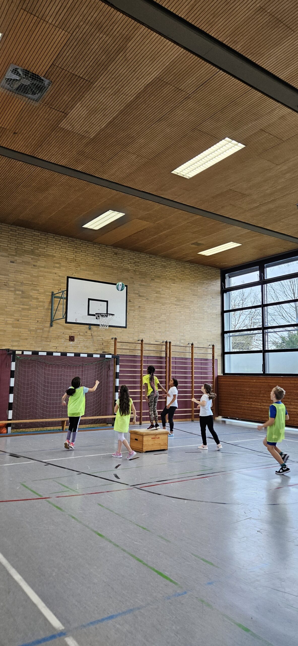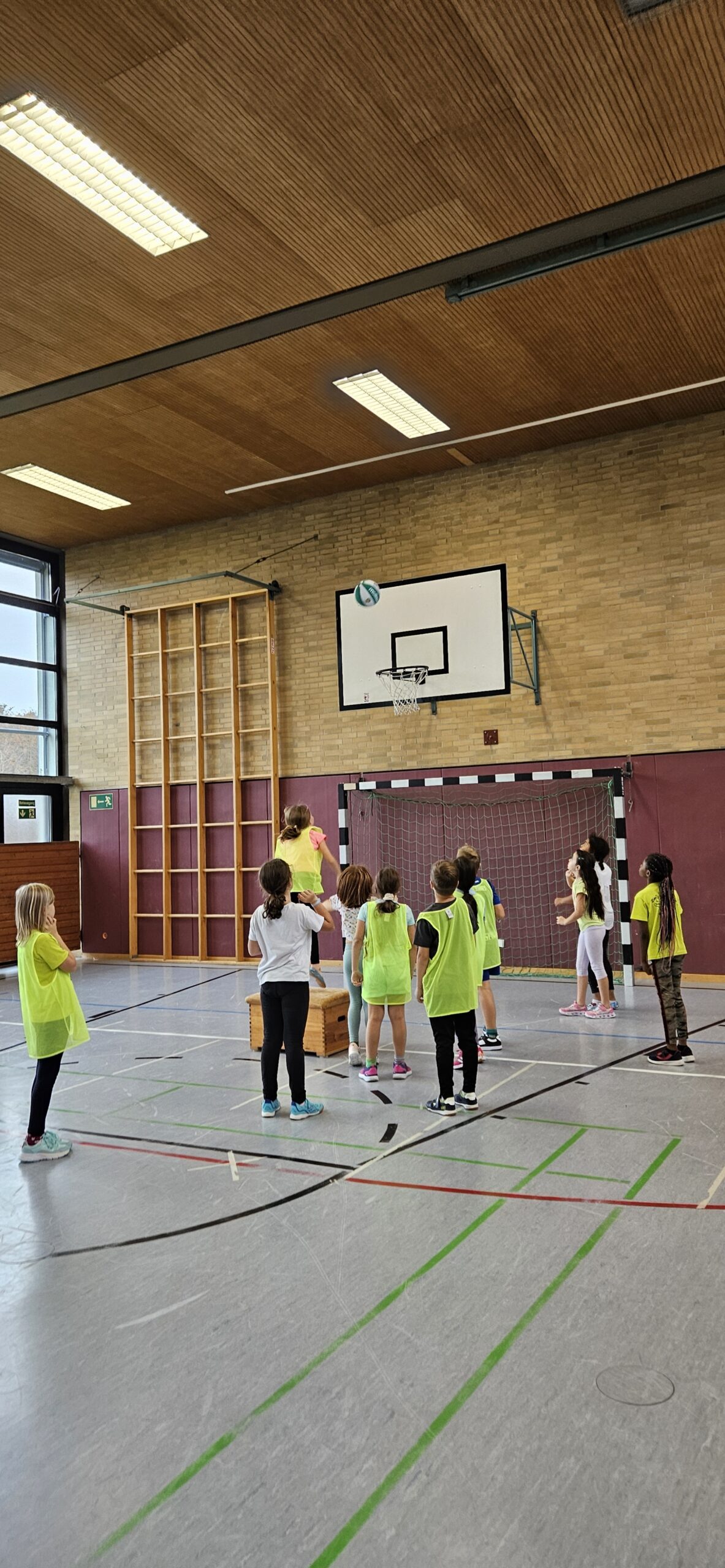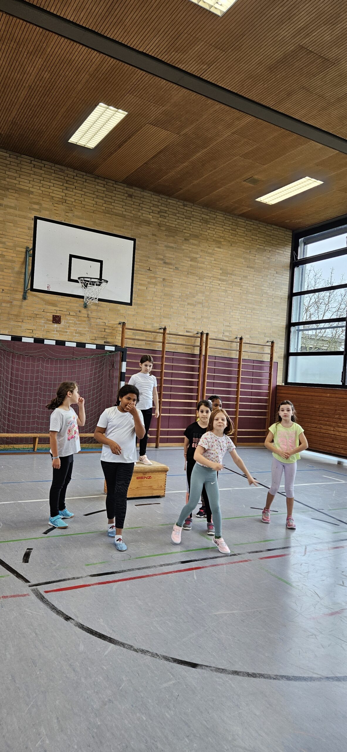 Auch dieses Jahr durften unsere Dritt- und Viertklässler am Basketballtag teilnehmen. Ermöglicht hat das der Basketballverband Baden-Württemberg in Kooperation mit dem TSV Ettlingen. Am 15.11. kam Frau Nina Skala, ein engagiertes und erfahrenes Vereinsmitglied mit vielen tollen Basketballspielideen im Gepäck zu uns an die Schule. Nach einem kurzen Aufwärmspiel übten die Kinder das Ballhandling auf abwechslungsreiche Art und Weise. Durch schnelle Passspiele und einen attraktiven Bewegungsparcours trainierten die Kinder neben Korbleger und Slalom-Dribbling auch Koordination und Ausdauer. Die Aufmerksamkeit und Konzentration wurden bei allen Spielen als Voraussetzung für ein gutes Zusammenspiel in den einzelnen Teams gefördert. Beim abschließenden Spiel Turmball mit Korbwurf fühlten sich alle Kinder wie große Basketballer/innen. Verabschiedet hat sich Frau Skala mit einem Turnbeutel für jedes Kind und einer vollen Stempelkarte für die erfolgreich durchlaufenen Übungen an diesem sportlichen Vormittag. Wir bedanken uns beim TSV Ettlingen für den diesjährigen Aktionstag an unserer Schule und freuen uns schon gemeinsam mit unseren Schülerinnen und Schülern auf das kommende Schuljahr.