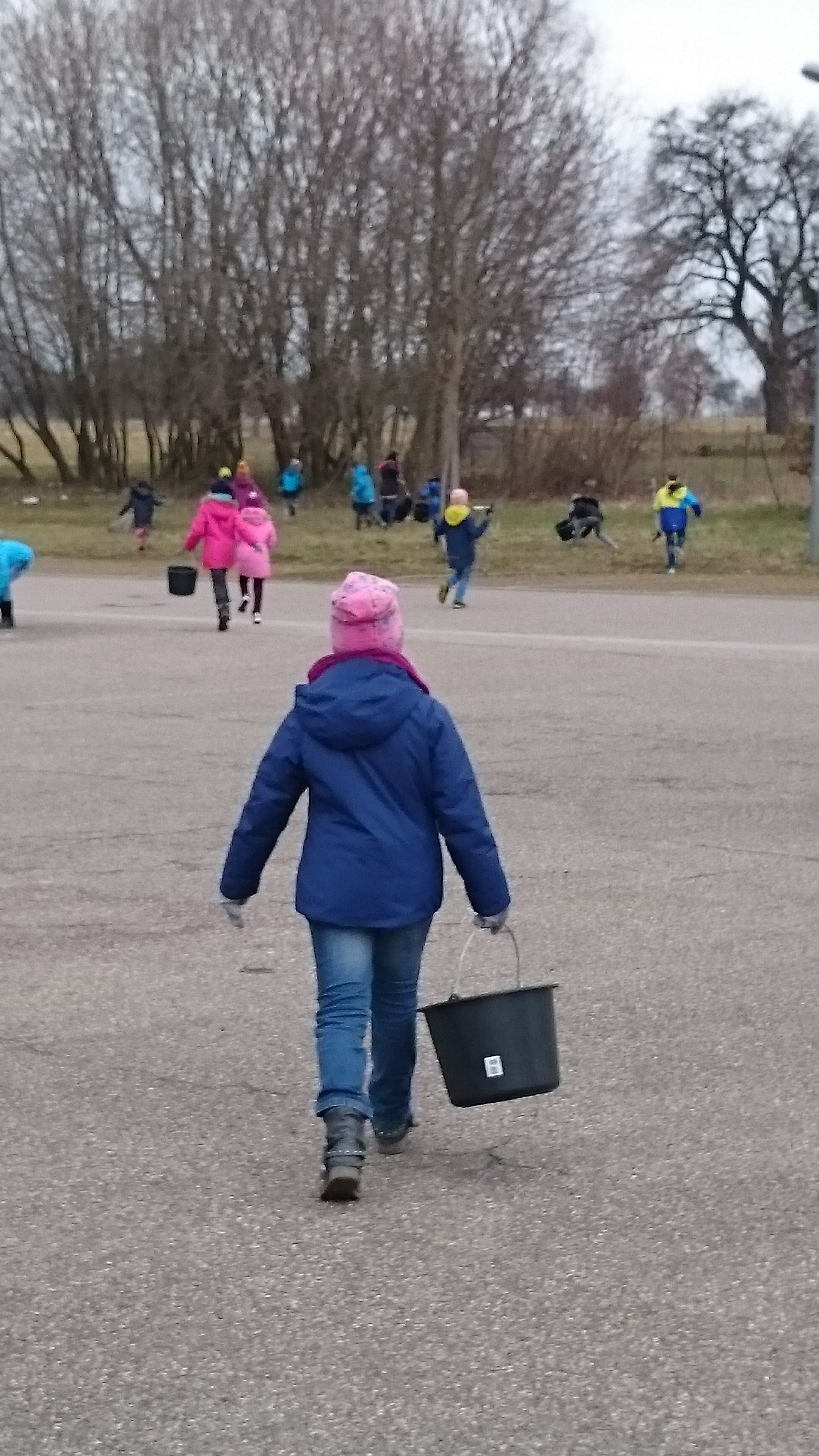 Am Freitag den 9.März sind wir, die 3.Klasse auf Müllsuche gegangen. Herr Wittler von der Stadt Ettlingen hatte viele Müllsäcke dabei. Vor der Putzaktion bewaffneten wir uns mit Zangen, Handschuhen und Eimern.