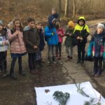Schnell fanden sie kleine Tierchen, die uns noch eine Weile begleiteten. Ein Mitschüler entdeckte einen Tierschädel mit Zähnen. Das war sehr aufregend und wird uns allen noch lange in Erinnerung bleiben. Am Ende des Rundweges kamen wir erneut zu unseren versteckten Wintervorräten.