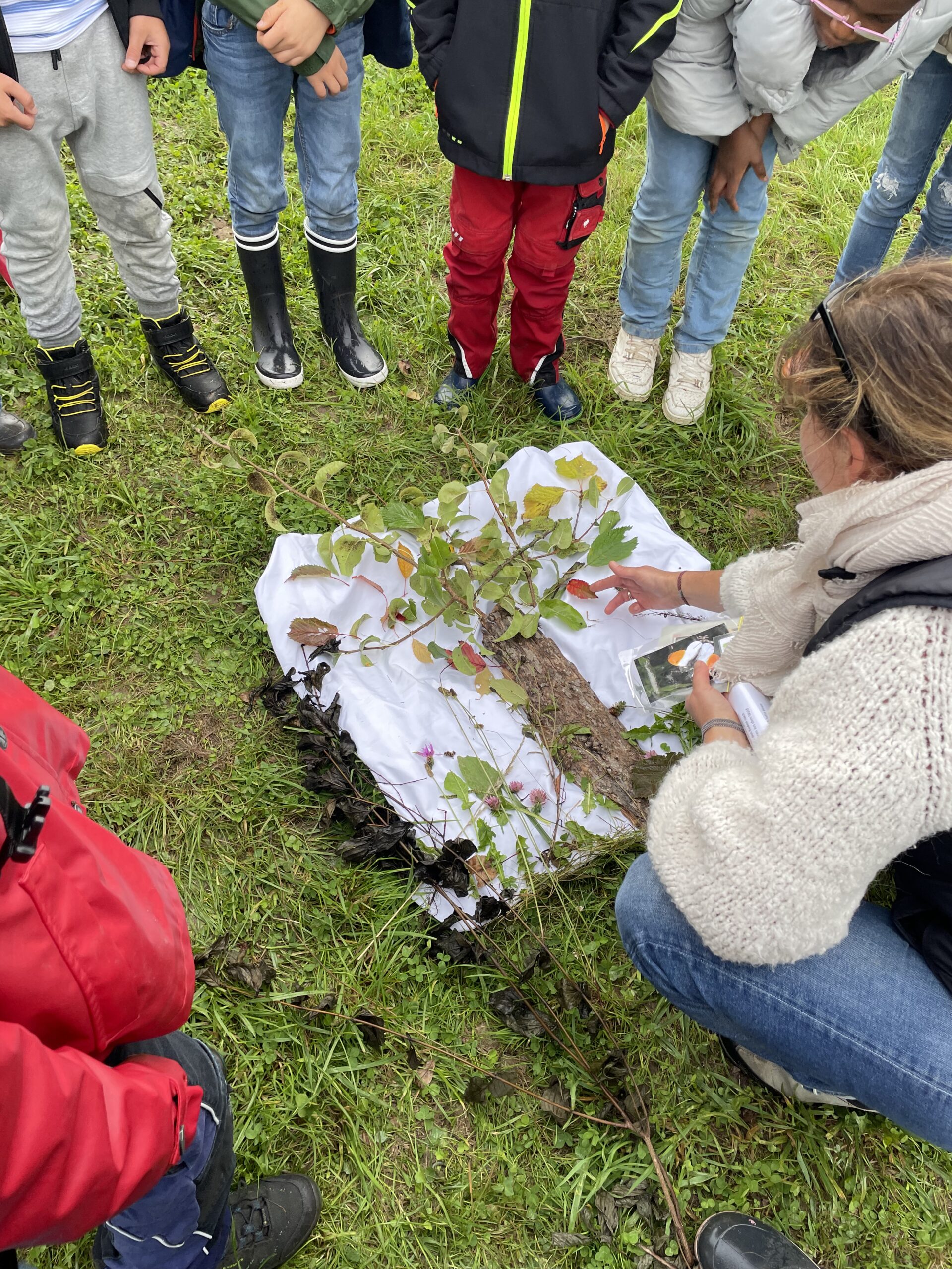 Ein spannendes Projekt führte unsere zweite Klasse kürzlich auf die nahegelegene Streuobstwiese. Unter der Leitung von Frau Scheib konnten die Kinder die Natur ganz genau unter die Lupe nehmen. Mit verschiedenen Naturmaterialien legten die Klasse zunächst einen „Baum“ nach und entdeckten dabei beim genaueren Hinschauen viel mehr, als auf den ersten Blick sichtbar war – kleine Insekten, Pflanzen und Spuren von Tieren.