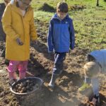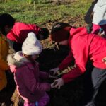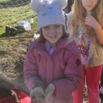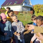 Das absolute Highlight war jedoch mit Sicherheit die Kartoffelernte am 23. Oktober. Frau Anderer vom Obst- und Gartenbauverein holte uns morgens bei strahlendem Sonnenschein an der Schule ab und führte uns zum Kartoffelacker, wo uns Herr und Frau Weber freudig erwarteten und den Acker bereits aufgelockert hatten. So konnten die Kinder direkt mit der Ernte, der von ihnen im April gesetzten Kartoffeln beginnen. Da es tagelang immer wieder viel geregnet hatte, war es eine recht matschige Angelegenheit und neben den Kartoffeln wurden zur Freude einiger Kinder auch viele Regenwürmer gefunden. Insgesamt ernteten wir rund 260 Kartoffeln. Die größte und schwerste wog sagenhafte 490Gramm. Jedes Kind durfte direkt 10 Kartoffeln mit nachhause nehmen.