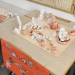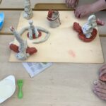 Es wurde gezeichnet und gemalt im passenden Stil der Künstler und es entstanden Portraits in bunten Farben. Die Schüler durften mit Modelliermasse und anderen Materialien wie Zeitungspapier, Kleister, Stoff, Pappe, Metall und Holz Kunstwerke erschaffen, sowie Skulpturen, Osterkarten, Lesezeichen, Mäppchen, ein großes farbenfrohes Bild für den Eingangsbereich im Schulhaus und Plastiken.