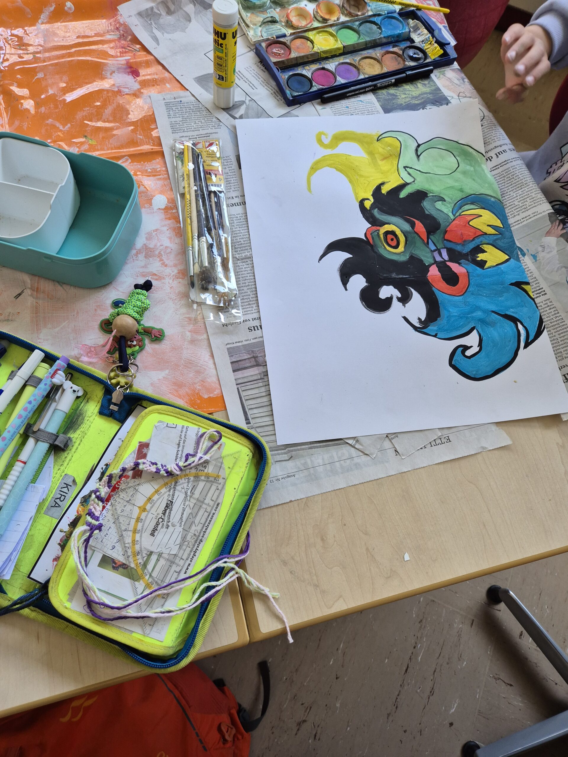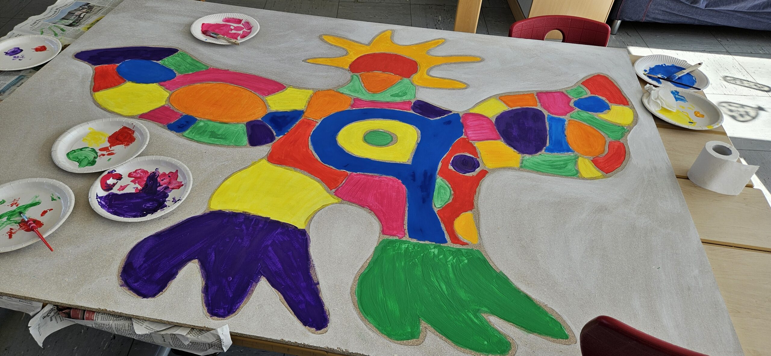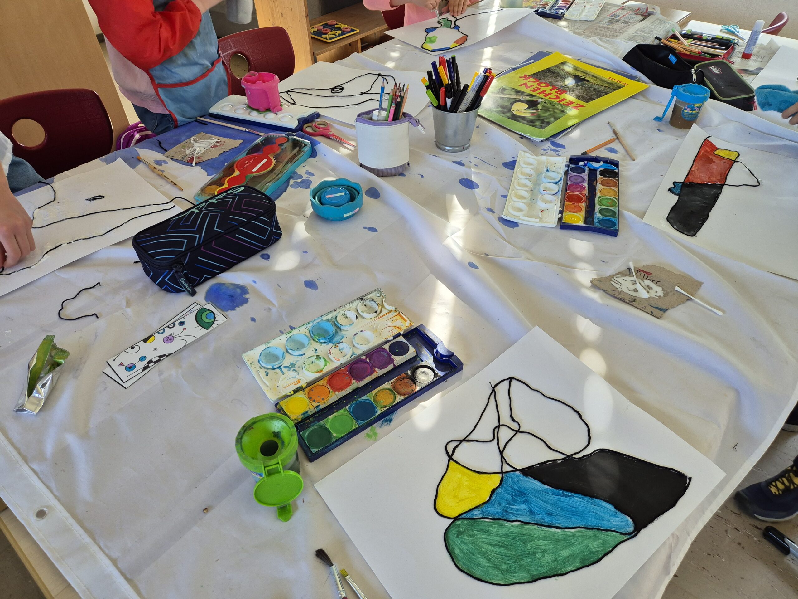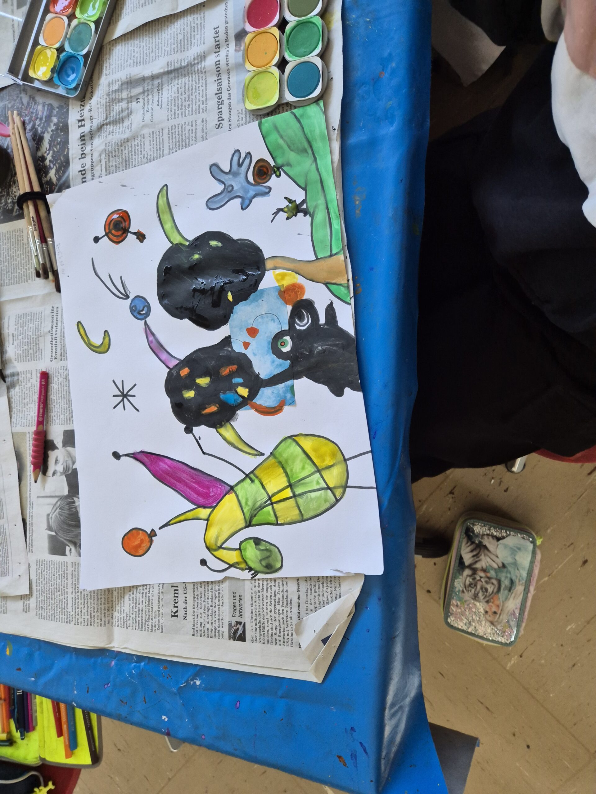 In der Woche vor den Pfingstferien durften die Schüler der HTS ihrer Kreativität freien Lauf lassen. Es wurde den Kindern die Möglichkeit geboten sich in Projekten mit einem Künstler und dessen Techniken und Kunstwerken auseinander zu setzen. Sie hatten die Wahl zwischen Paul Klee, Picasso, Miro und Niki de Saint Phalle. Jeder Tag startete mit den wichtigsten Informationen über einen der vier Künstler und mit einer kleinen praktischen Übung. Die einzelnen Gruppen rollierten jeden Morgen von Lehrer zu Lehrer, so dass jeder Schüler einen guten Überblick bekam. Im Anschluss ging es dann ins eigene gewählte Projekt, in dem sich alle fleißig austobten.