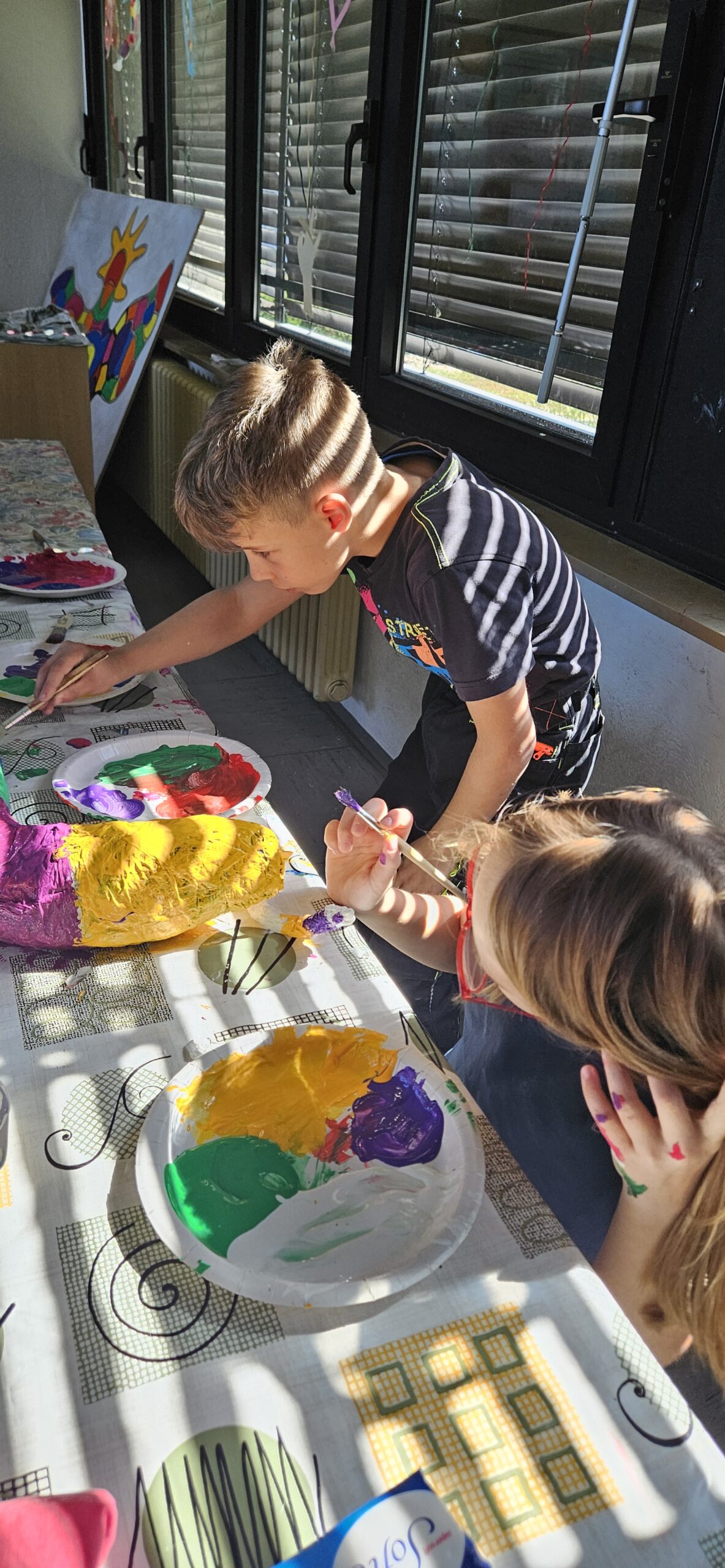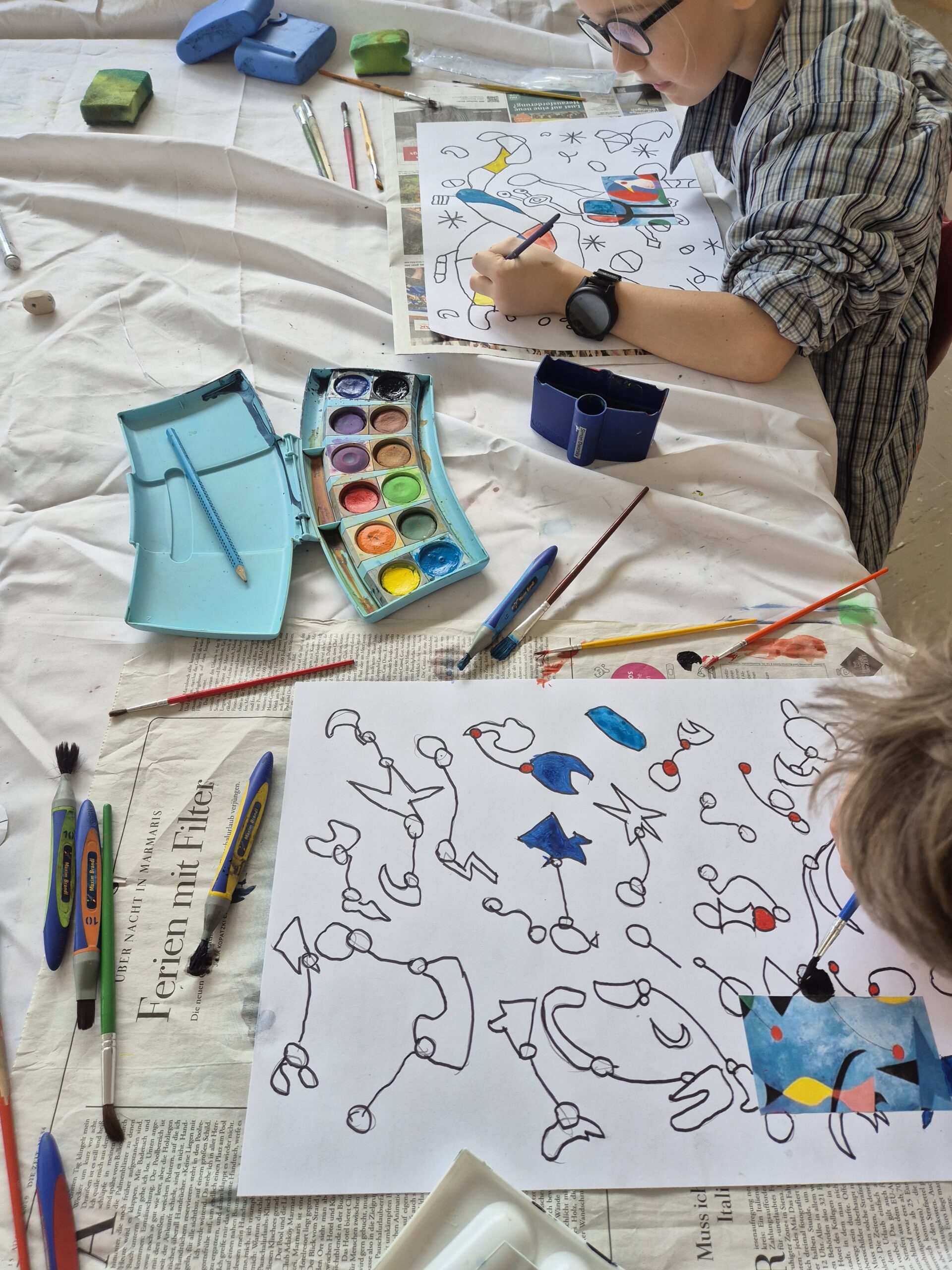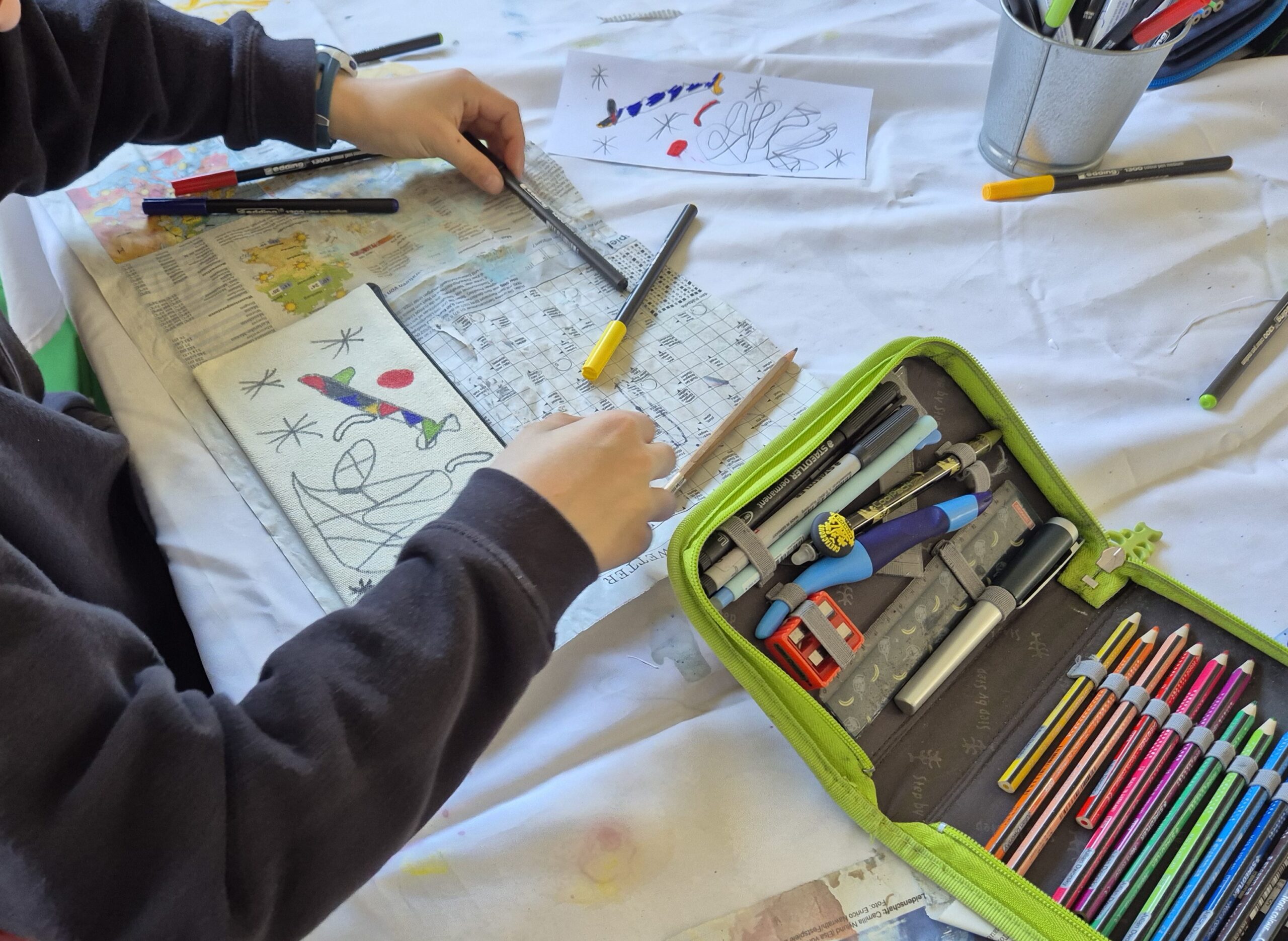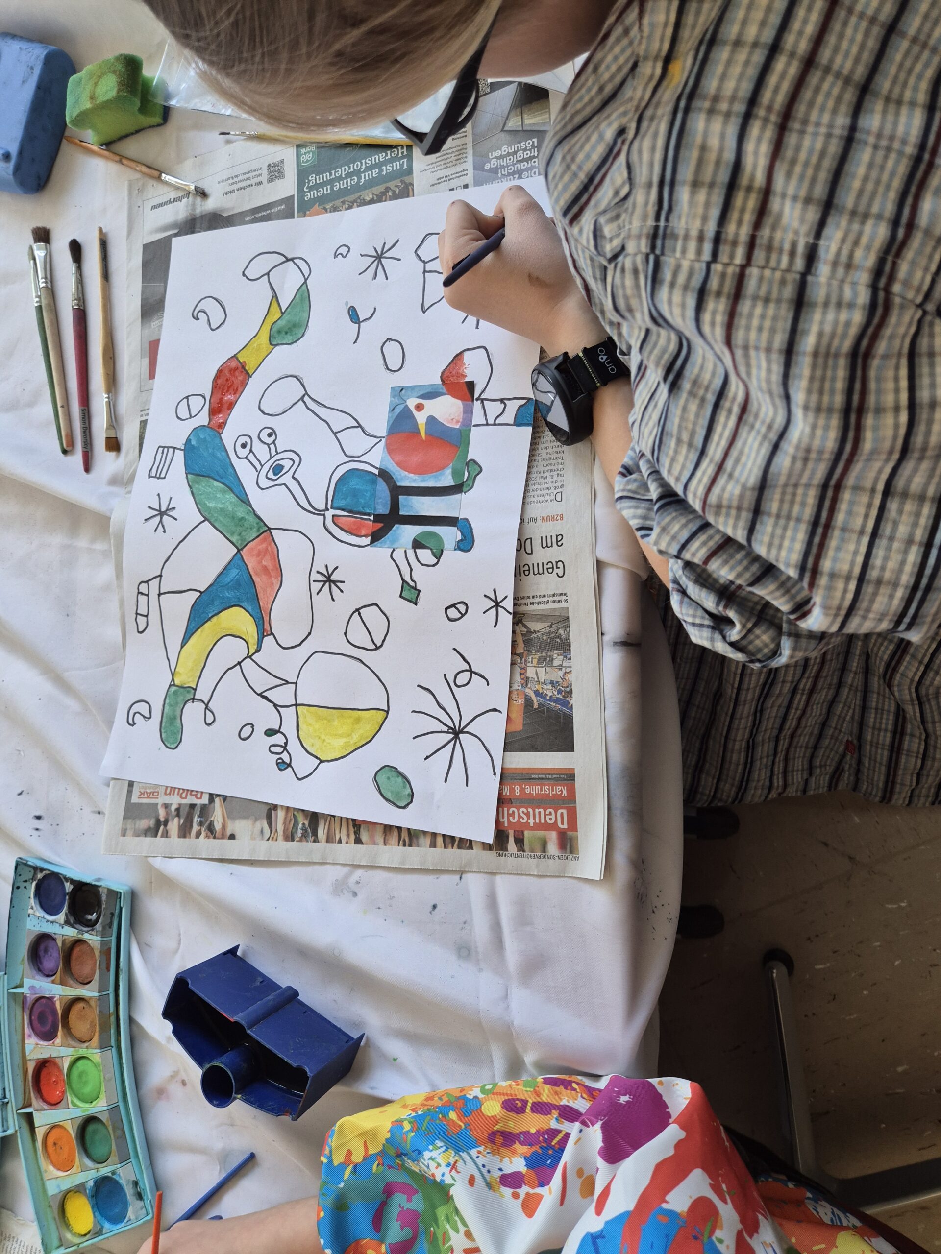 In der Woche vor den Pfingstferien durften die Schüler der HTS ihrer Kreativität freien Lauf lassen. Es wurde den Kindern die Möglichkeit geboten sich in Projekten mit einem Künstler und dessen Techniken und Kunstwerken auseinander zu setzen. Sie hatten die Wahl zwischen Paul Klee, Picasso, Miro und Niki de Saint Phalle. Jeder Tag startete mit den wichtigsten Informationen über einen der vier Künstler und mit einer kleinen praktischen Übung. Die einzelnen Gruppen rollierten jeden Morgen von Lehrer zu Lehrer, so dass jeder Schüler einen guten Überblick bekam. Im Anschluss ging es dann ins eigene gewählte Projekt, in dem sich alle fleißig austobten.
