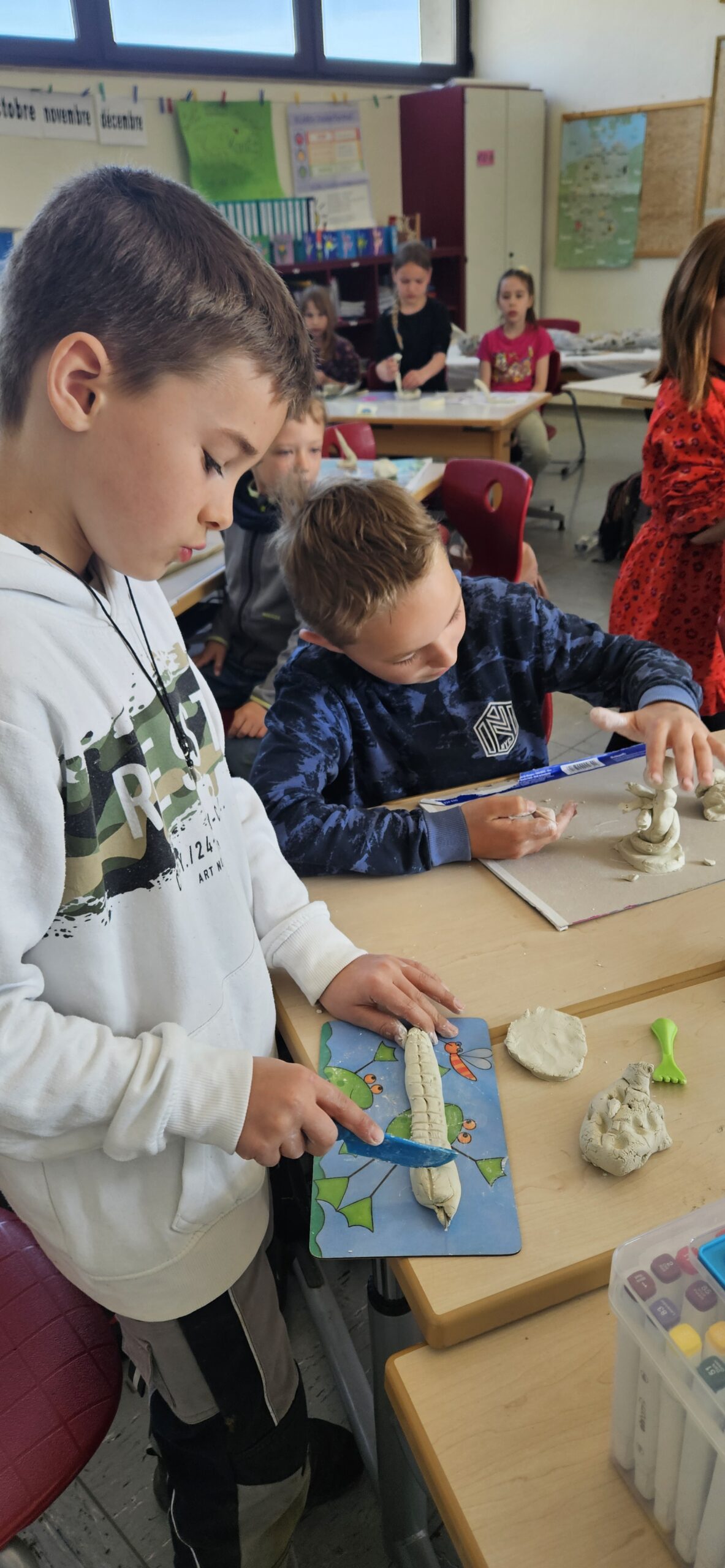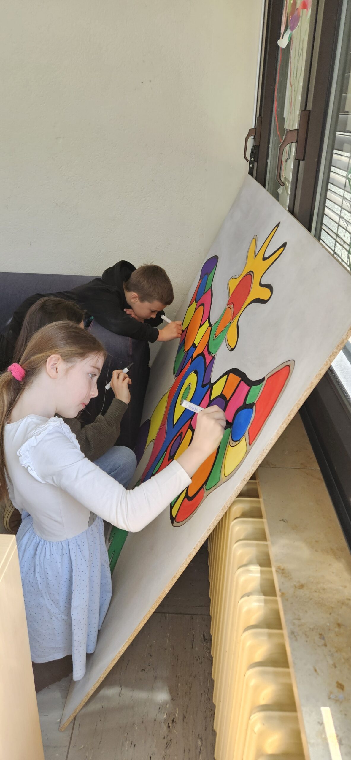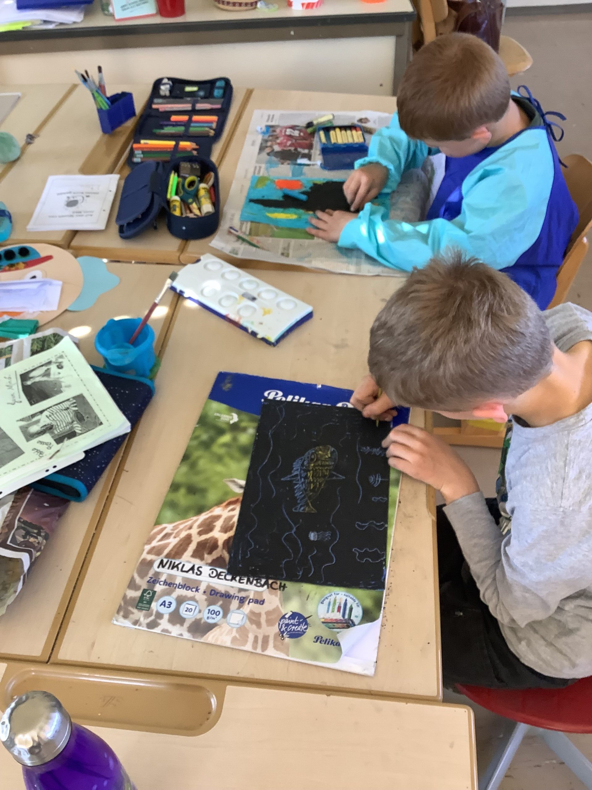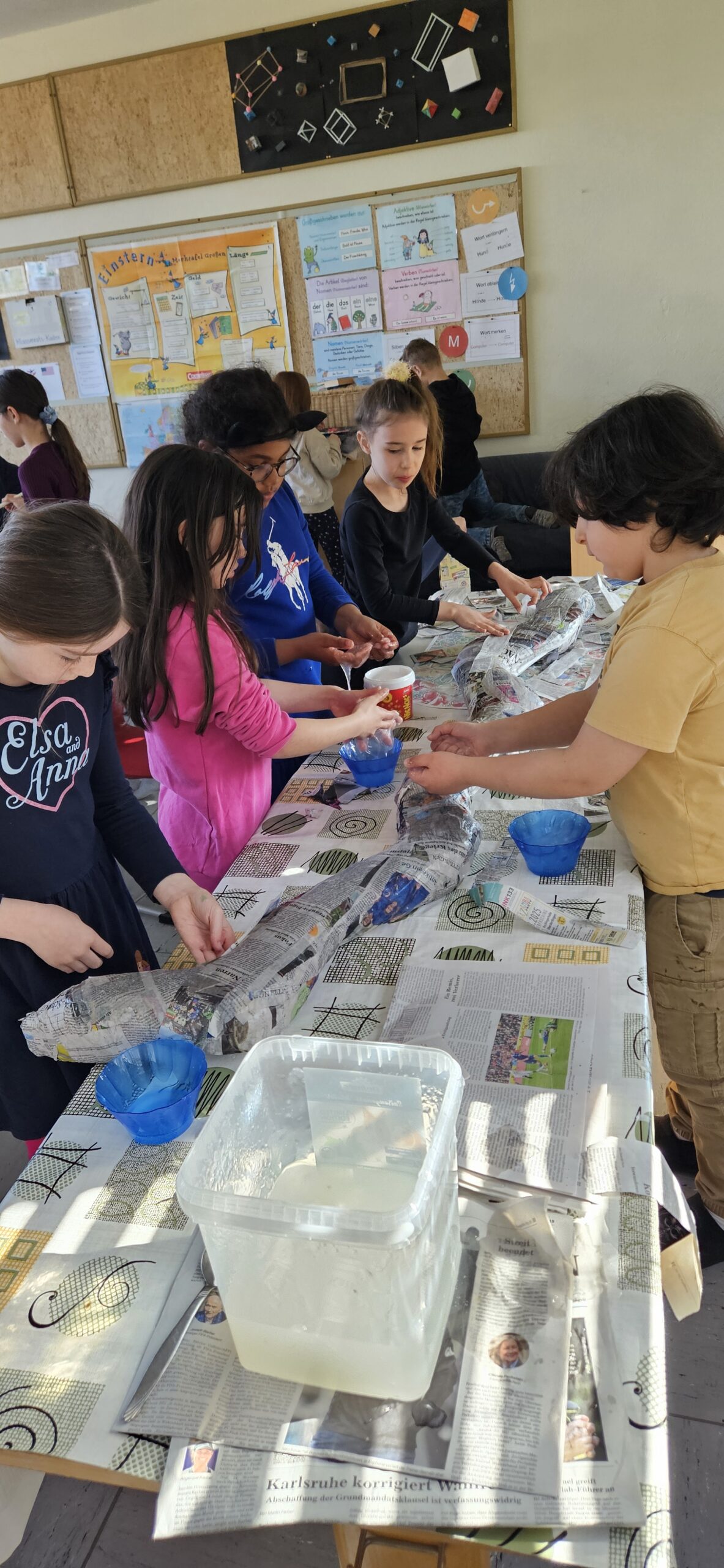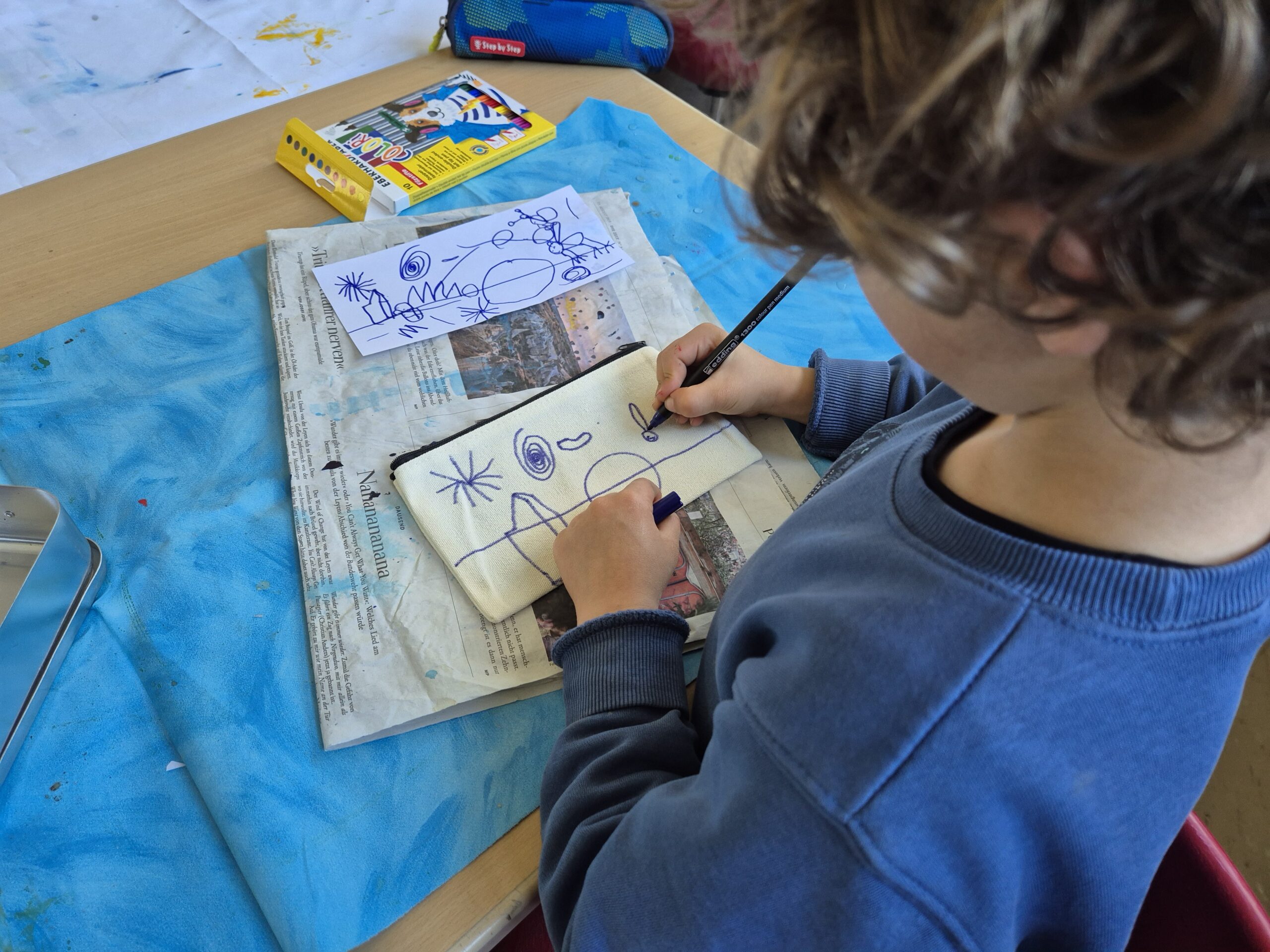 Es wurde gezeichnet und gemalt im passenden Stil der Künstler und es entstanden Portraits in bunten Farben. Die Schüler durften mit Modelliermasse und anderen Materialien wie Zeitungspapier, Kleister, Stoff, Pappe, Metall und Holz Kunstwerke erschaffen, sowie Skulpturen, Osterkarten, Lesezeichen, Mäppchen, ein großes farbenfrohes Bild für den Eingangsbereich im Schulhaus und Plastiken.