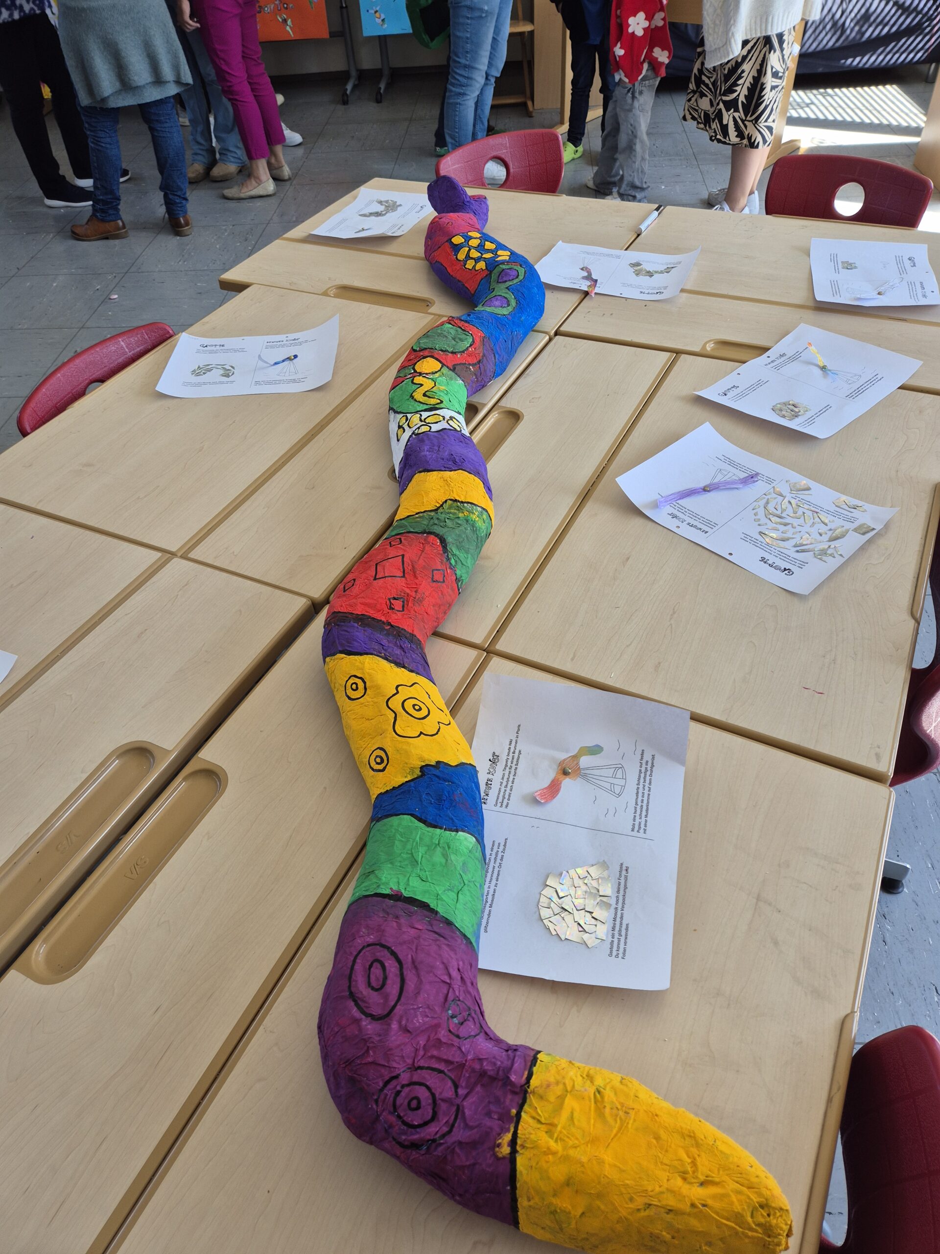 4 Tage lang wurde mit großer Begeisterung gearbeitet und jeder konnte sich verwirklichen. Im Anschluss daran wurden alle Meisterwerke zur Schau gestellt und die Kinder, Eltern oder auch Verwandte hatten die Gelegenheit alles genau zu bewundern. Es war eine gelungene Projektwoche, die den Schülern und Lehrern großen Spaß und viel Freude bereitet hat.