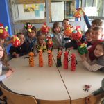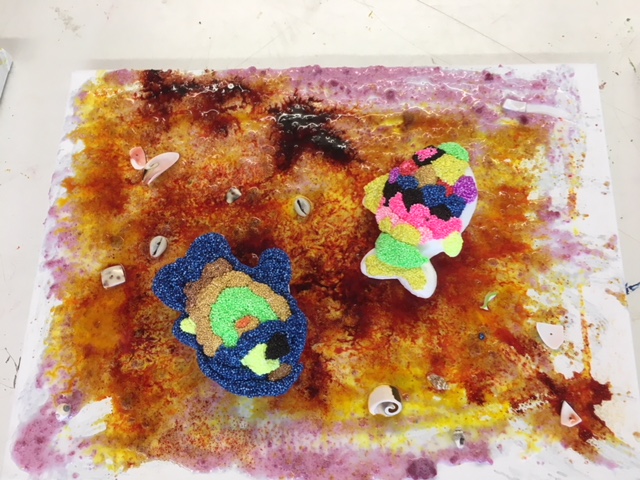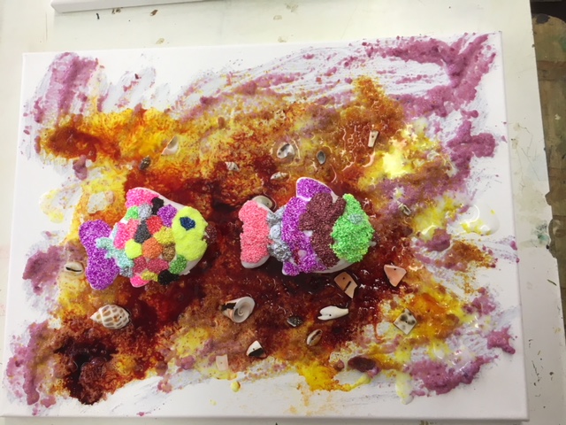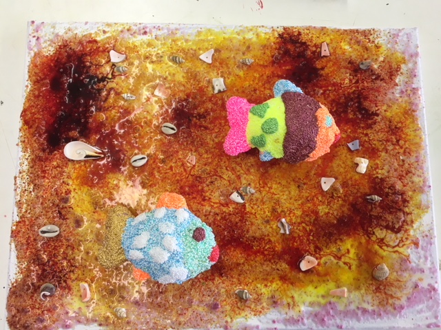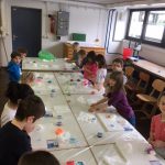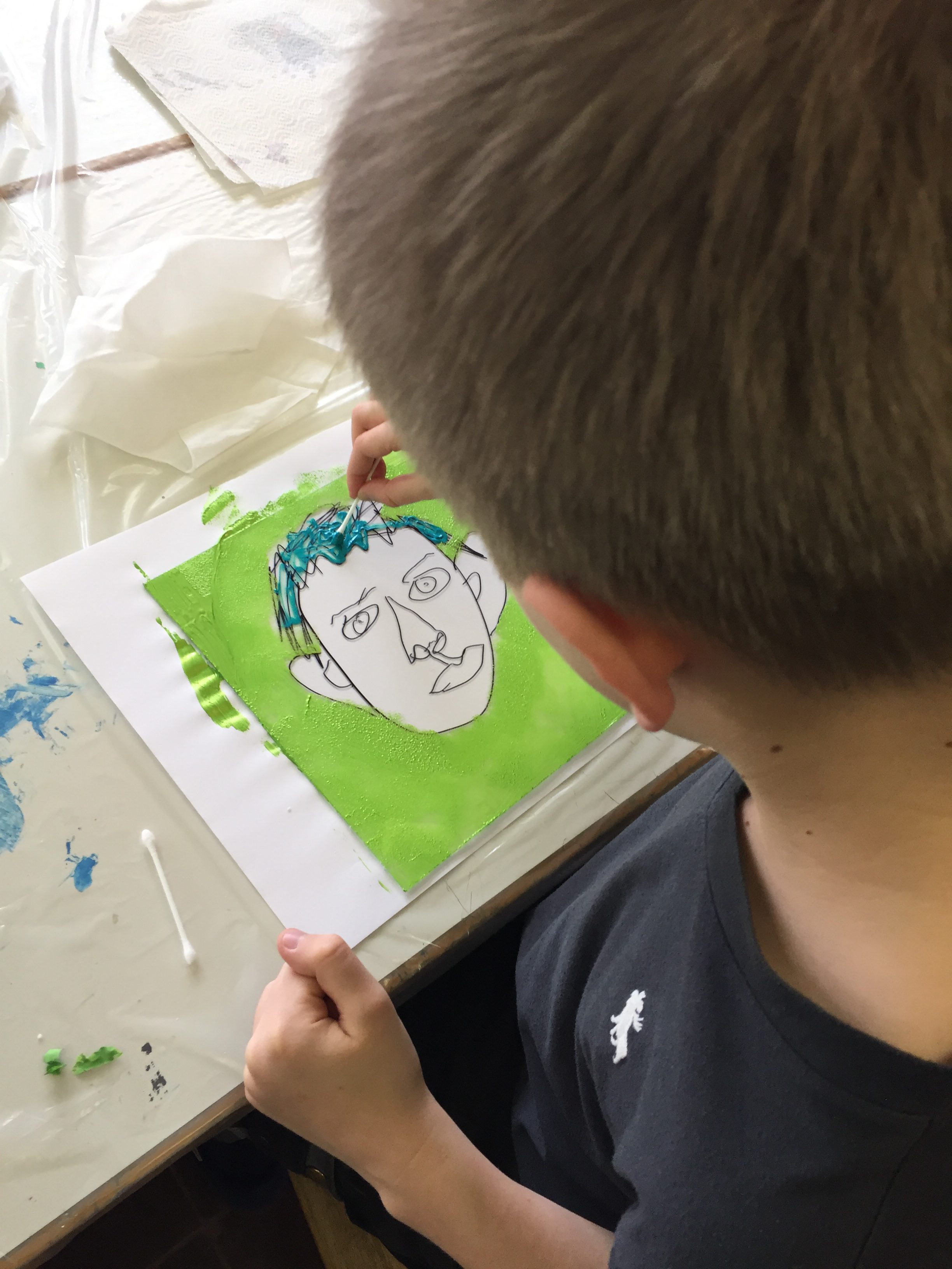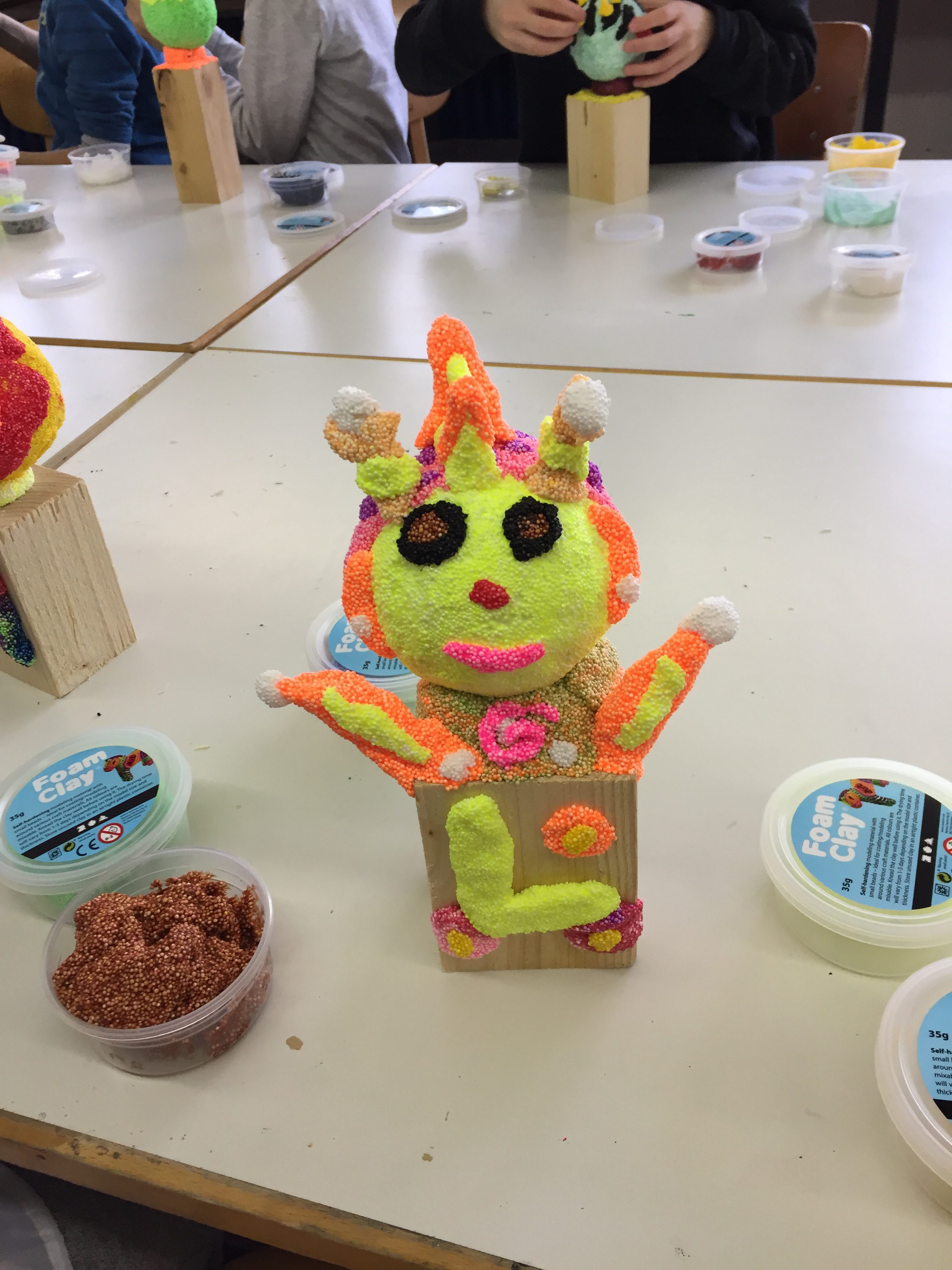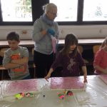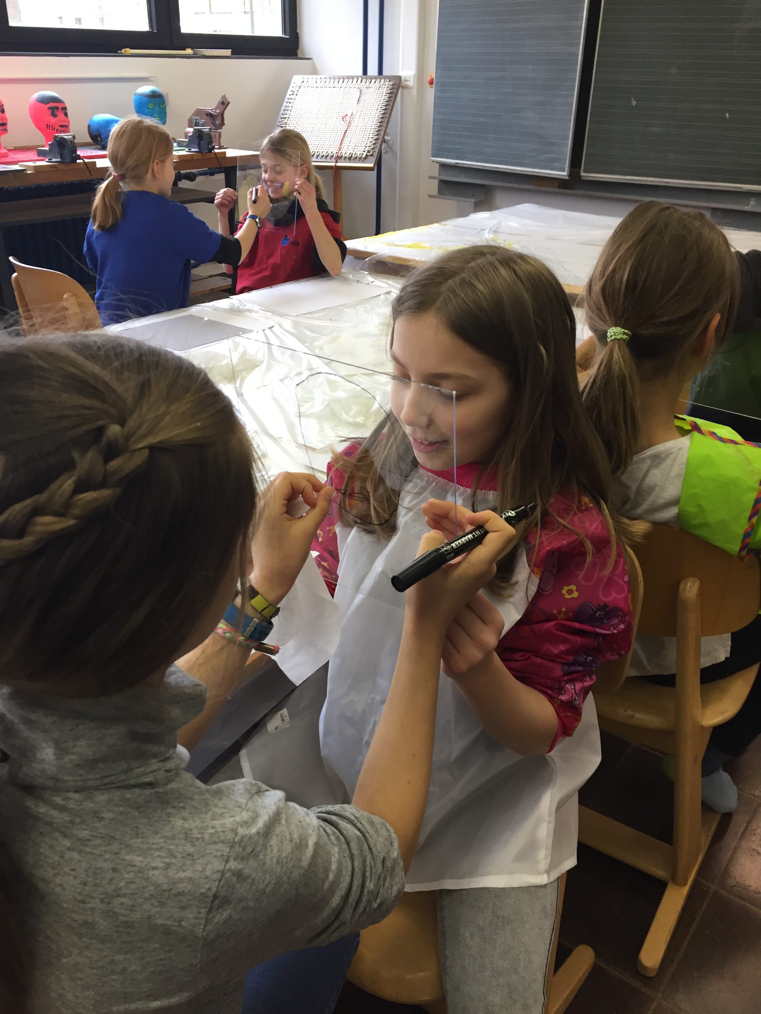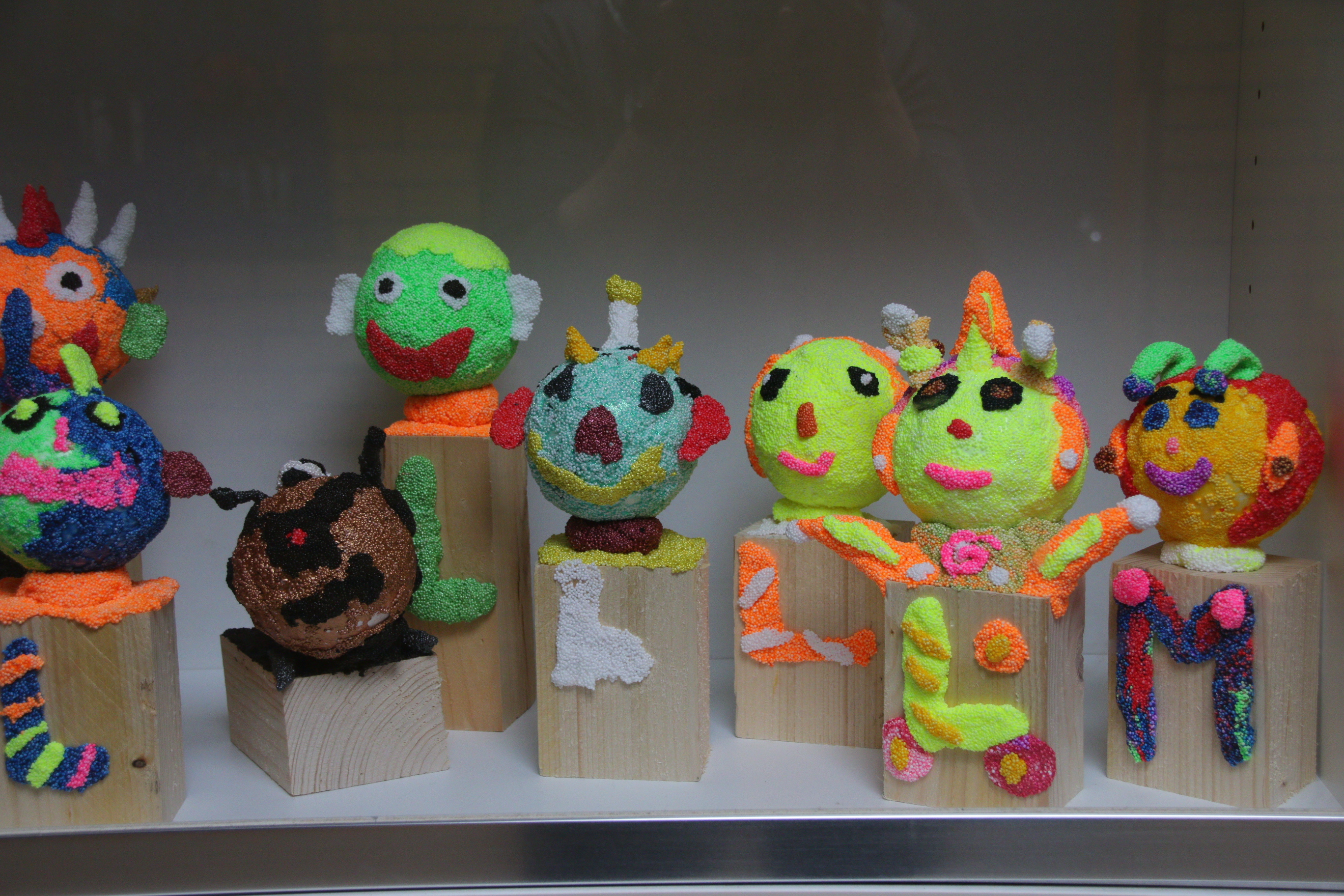Ihre Kreativität wurde zusätzlich an einem Tag von der Künstlerin Anuschka Rausch gefördert, die ihr Atelier in Langensteinbach hat und sehr häufig mit Kindern arbeitet. So stellte die erste Klasse eine Collage mit Wackelpudding und Konfettifarbe her, die zweite Klasse schmückte Friseurköpfe mit Schmuck und Filzwolle und gestaltete einen Keilrahmen damit. Klasse 3 arbeitete mit Spiegelfliesen und malte Quatschbilder damit, während die vierte Klasse Portraits auf Plexiglas herstellte und Skulpturen aus Foam Clay auf Holz aufzog. Alle Kinder konnten sehr schöne Ergebnisse präsentieren, die nun im Schulhaus zu bewundern sind. Die Projekttage konnten dank der Unterstützung des Fördervereins so erfolgreich stattfinden. Herzlichen Dank!