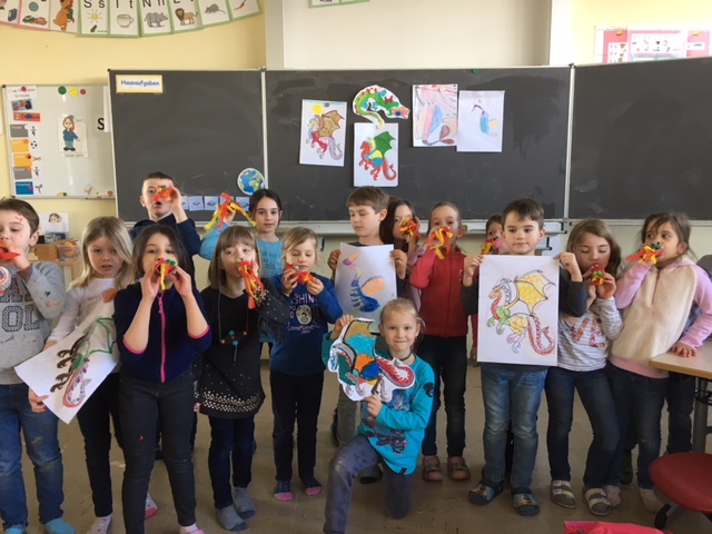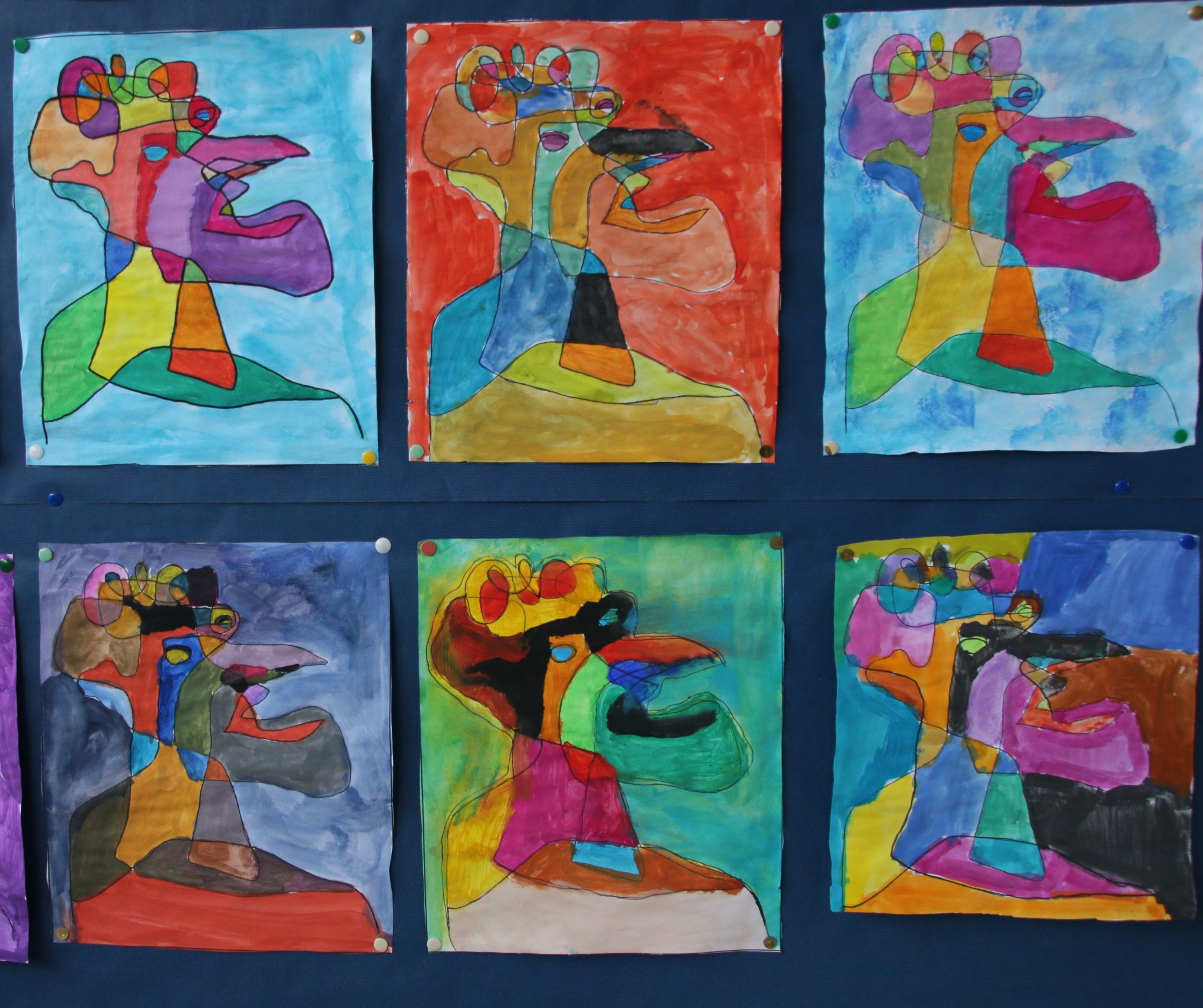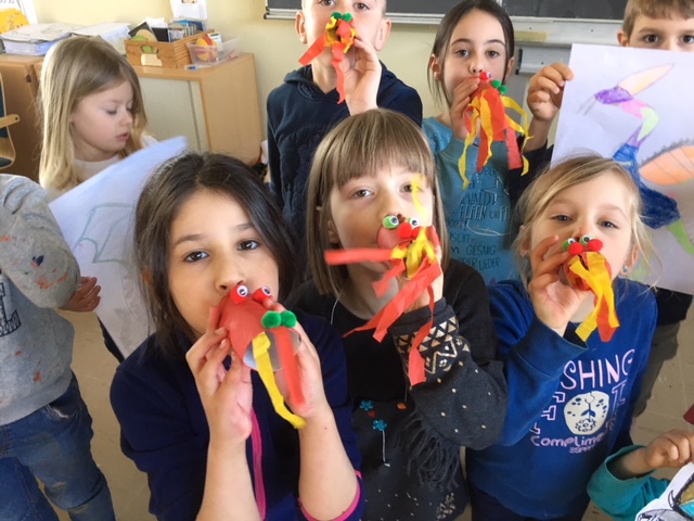 So waren Henri Matisse (Klasse 4), Paul Klee (Klasse 3), Pablo Picasso (Klasse 2) und Leonardo da Vinci (Klasse 1) „zu Gast“ im Unterricht vor den Osterferien. Die Kinder hatten 5 Tage lang Zeit sich mit den jeweiligen Künstlern zu beschäftigen und ihr Leben und Wirken kennenzulernen.