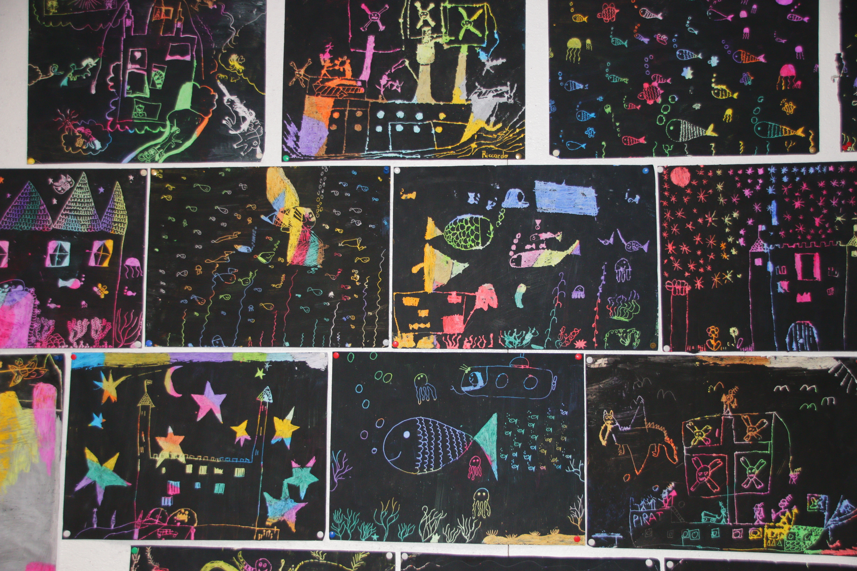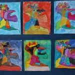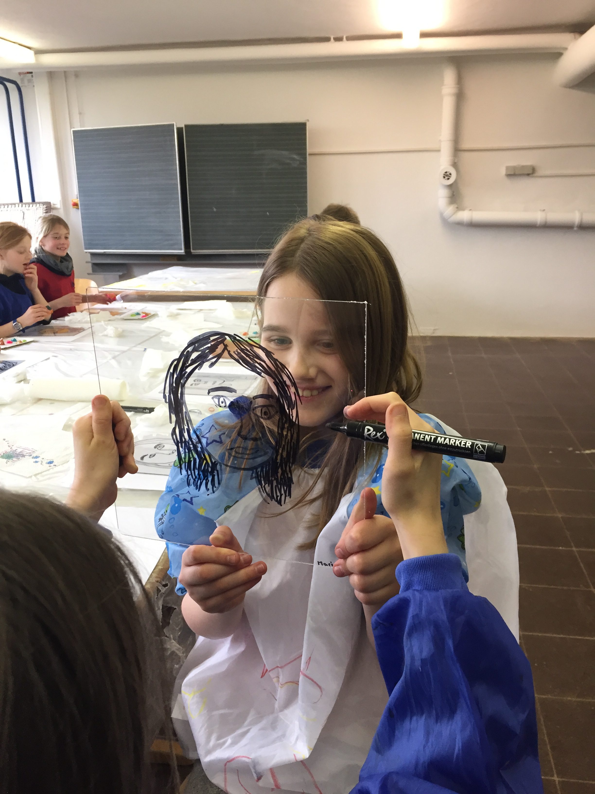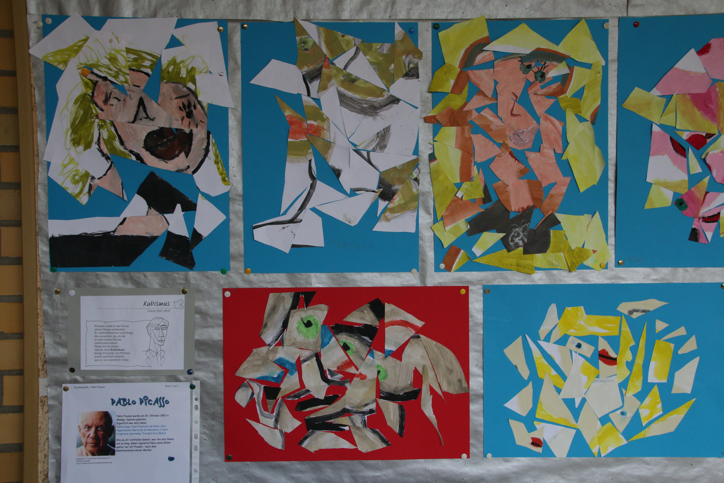 Dabei wurden viele Kunstwerke geschaffen: Scherenschnitte à la Matisse, Sgrafitto’s (Kratzbilder) à la Paul Klee, Portraits à la Picasso oder da Vinci. Die Schüler erfuhren, wie die Künstler gelebt haben, welche Interessen sie hatten, wie sie ihre Kunst schufen und welches Interesse ihre Umwelt an ihren Werken hatte.