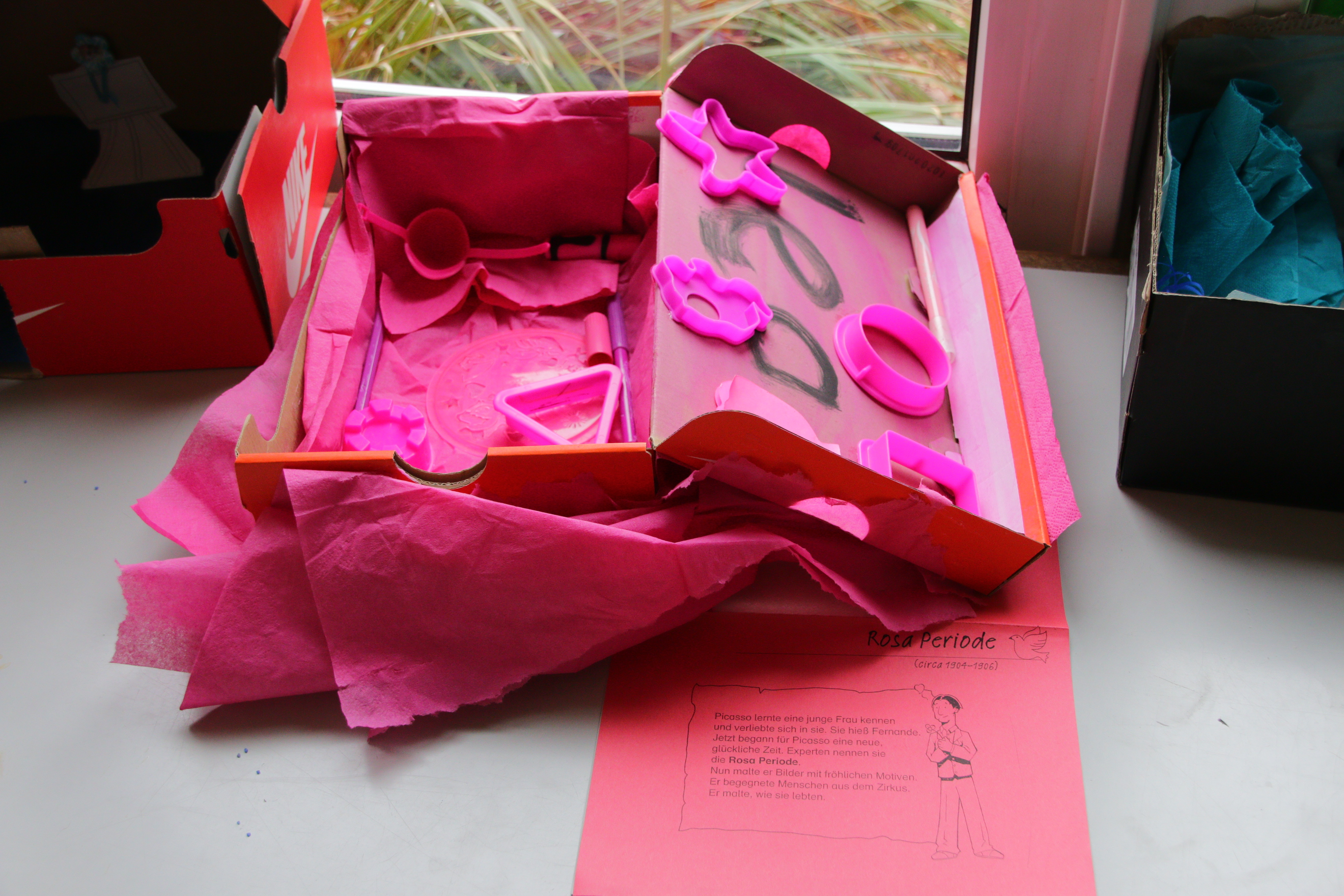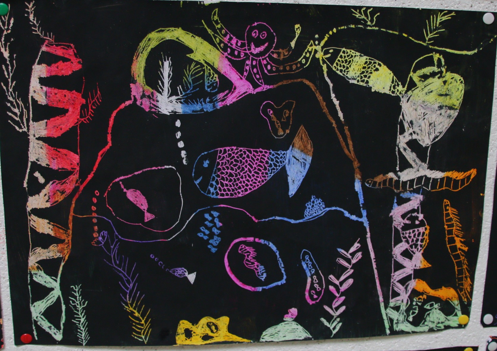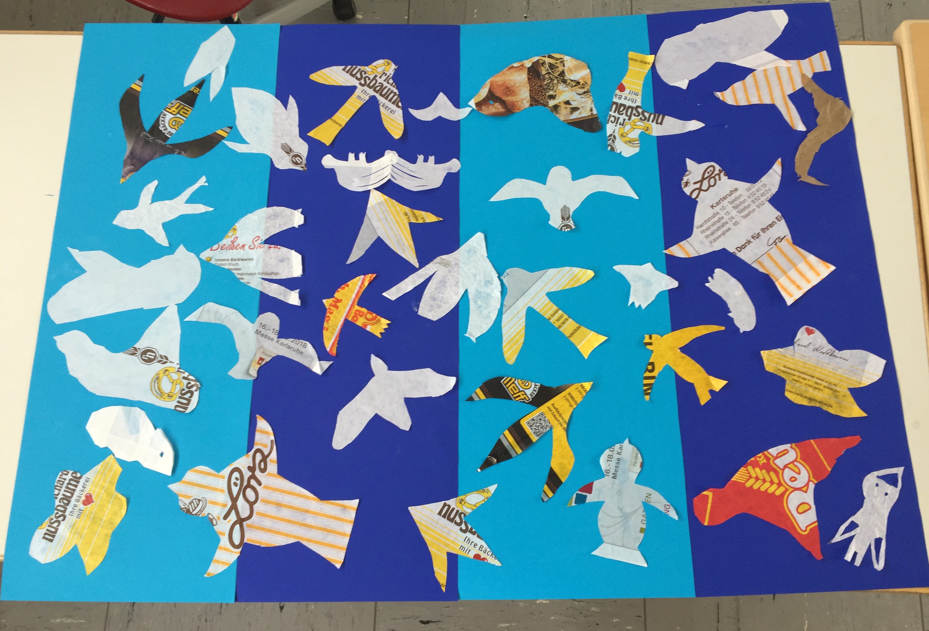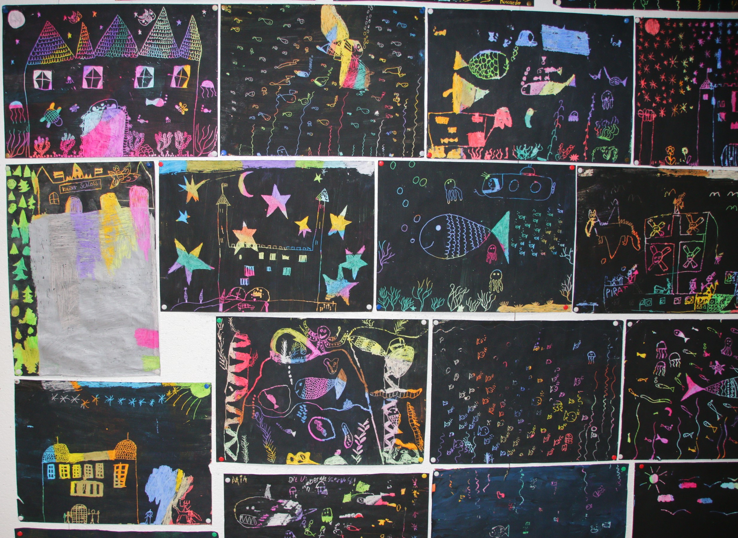 Dabei wurden viele Kunstwerke geschaffen: Scherenschnitte à la Matisse, Sgrafitto’s (Kratzbilder) à la Paul Klee, Portraits à la Picasso oder da Vinci. Die Schüler erfuhren, wie die Künstler gelebt haben, welche Interessen sie hatten, wie sie ihre Kunst schufen und welches Interesse ihre Umwelt an ihren Werken hatte.