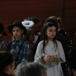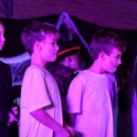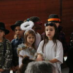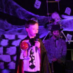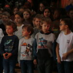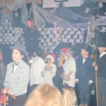 Dann ging es los: Karl von Radau, der Schlossherr von Schloss Eulenstein, hatte zur weihnachtlichen Geisterstunde gerufen. Alle Geister waren gekommen, um nach langer Zeit wieder einmal auf Schloss Eulenstein zu spuken. Die Kleine Hexe führte zum ersten Mal ihre Krachmaschine vor und Fritz Rabatz holte sich deswegen heiße Sohlen. Am Ende waren alle in bester Geisterweihnachtspartystimmung. Gespielt wurde das Stück von Kindern der Klasssen 2 bis 4, das erstmals von Frau Zalewski einstudiert wurde. Der Geisterchor, bestehend aus den Kindern aller Klassenstufen, stand unter der musikalischen Leitung von Frau Reinsfelder vom Gesangverein Germania. Vielen Dank an Beide dafür!