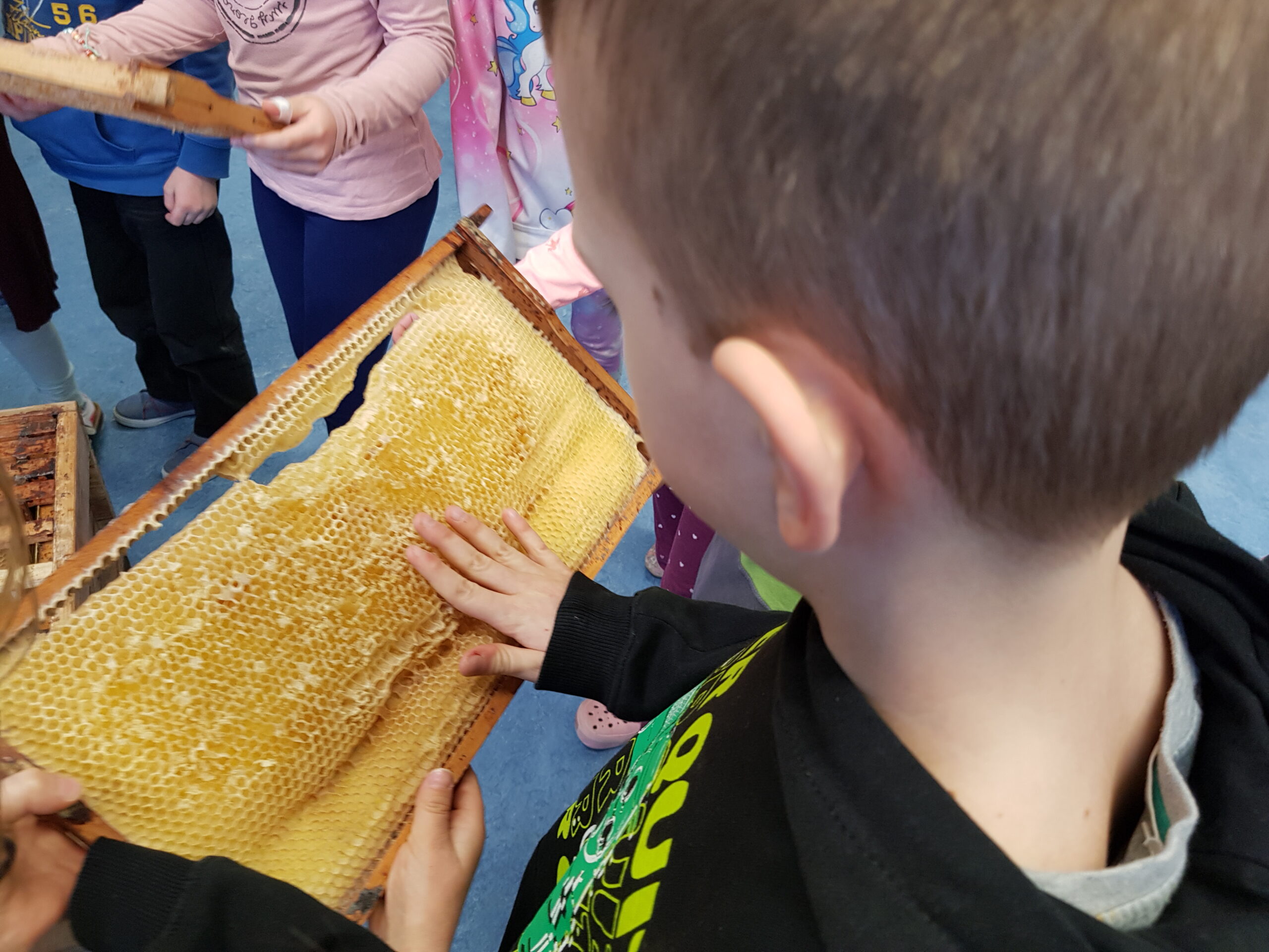 Heute war Frau Scheib da und hat uns vieles über die Honigbiene beigebracht.