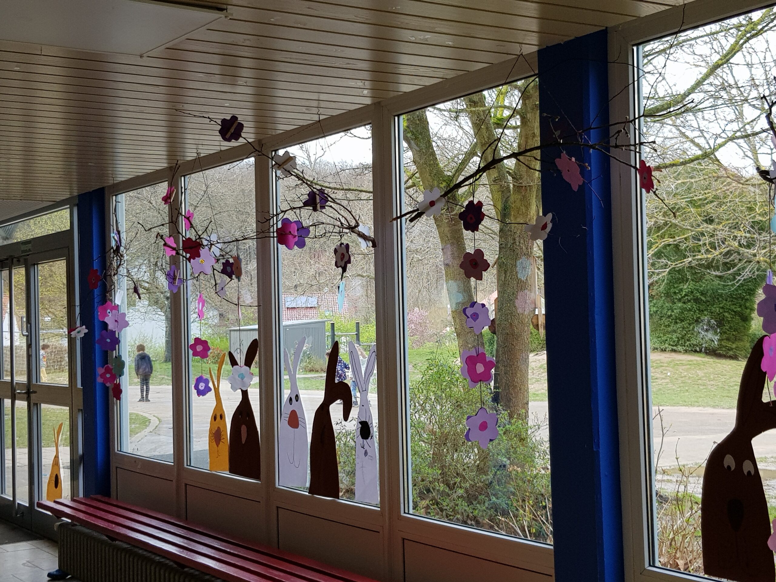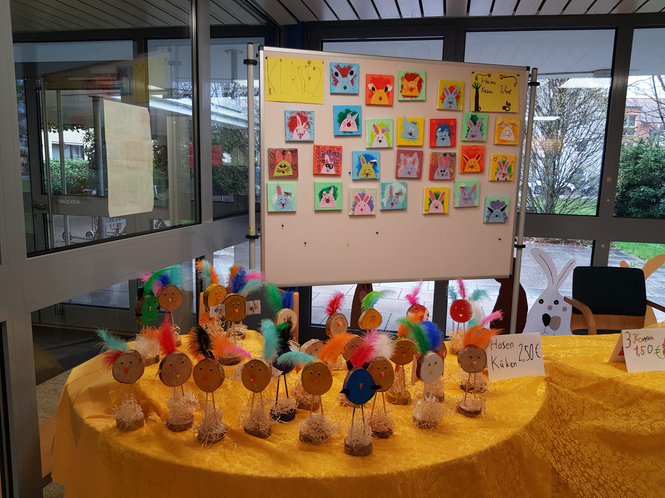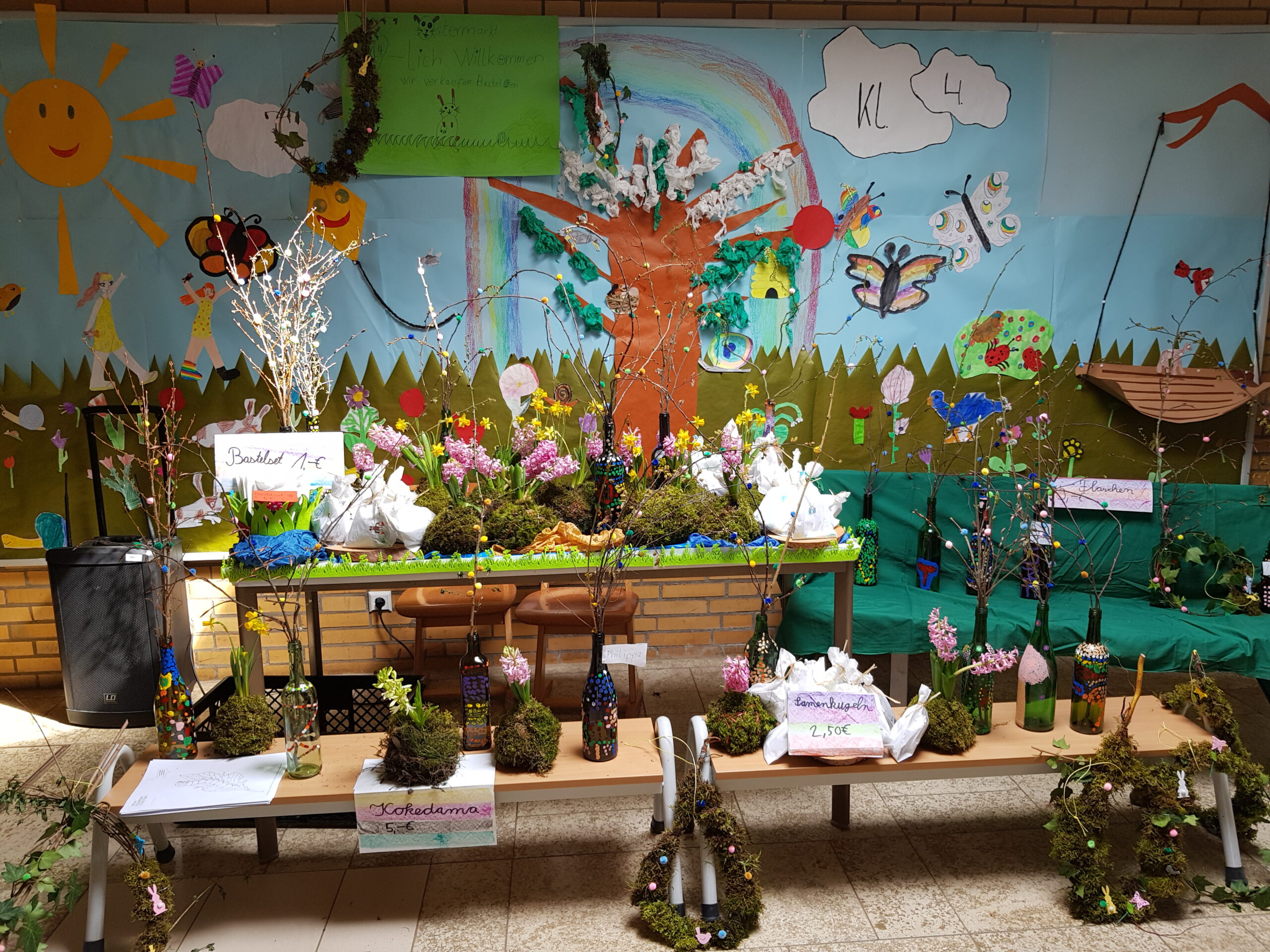 Am 30. März fand an der HTS Spessart ein Frühlingsmarkt statt. Trotz des nicht sehr passenden Wetters, versetzten die Schüler die Besucher ab der ersten Minute in Frühlingsstimmung. Zur Begrüßung sangen alle Klassen „Ich lieb den Frühling“ und „Die Blumen tanzen Rock ’n’ Roll“ und gaben dem Winter ein klares Zeichen. Er durfte sich an diesem Tag verabschieden! Im Foyer der Grundschule roch es nach den frischen Blumen der selbstgemachten Kokedamas und auch die bunt geschmückten Stände der Klassen 1 bis 4 luden zum Verweilen ein. Die Kinder hatten großen Spaß, ihre österlichen und frühlingshaften Basteleien zu verkaufen. Das Angebot reichte von Sockenhasen, Blumengirlanden über Kerzenständer bis hin zu Kleinigkeiten wie Osterkarten und Samenbomben. Auch der religiöse Hintergrund des Osterfestes sollte nicht zu kurz kommen. Hierzu boten die Viertklässler während des Frühlingsmarktes einen Stationenlauf zu einem Bibelpsalm an, den man mit allen Sinnen erleben konnte. All das hatten die Schüler mit ihren Lehrern zuvor im Rahmen einer Projektwoche möglich gemacht und sich mit unterschiedlichsten Themen auf den Frühling eingestimmt. Zusammen mit den Leckereien aus dem „Elterncafé“ wurde der Frühlingsmarkt zu einem besonderen Abschluss für eine ereignisreiche Woche. Die Schule bedankt sich hierfür bei dem Förderverein und allen Helfern!